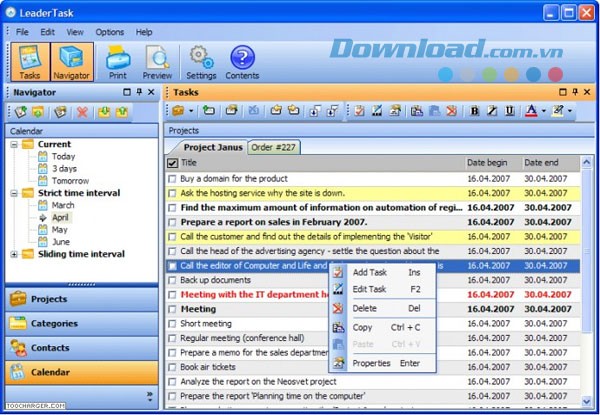 LeaderTask là phần mềm được thiết kế để hỗ trợ tổ chức công việc cho cả cá nhân và các tổ chức kinh doanh. Ứng dụng này hỗ trợ bạn trong việc xây dựng kế hoạch nhiệm vụ , sắp xếp các cuộc họp, điều phối dự án, quản lý đội ngũ nhân viên, và xử lý hiệu quả các thông điệp email.