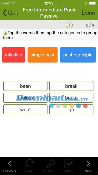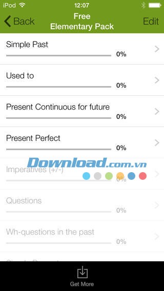 Mỗi cấp độ bao gồm hơn 600 tình huống ngữ pháp khác nhau, được phân chia thành 25 chủ đề cụ thể như thì quá khứ đơn, câu hỏi đuôi và giới từ tiếng Anh. Các câu hỏi ngữ pháp được trình bày dưới 10 dạng bài tập độc đáo, bao gồm điền vào chỗ trống, trắc nghiệm và nối đáp án.