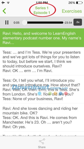 Ứng dụng LearnEnglish Podcasts cung cấp cho bạn khả năng học tiếng Anh giao tiếp hàng ngày thông qua 40 tập podcast, với tổng thời lượng nghe lên đến hơn 20 giờ hoàn toàn miễn phí.