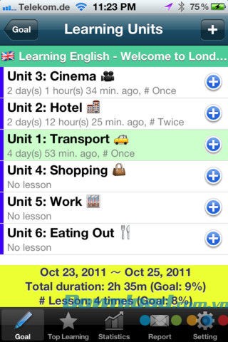 Hiển thị thời gian học gần nhất sau mỗi bài học.