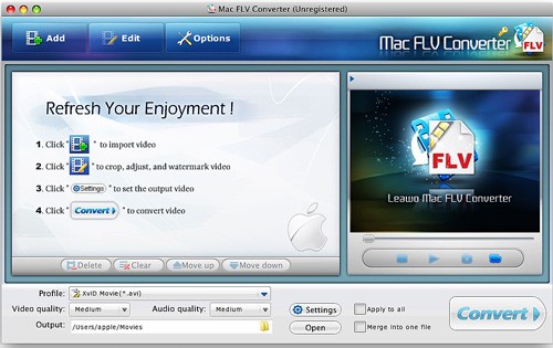 Công cụ hỗ trợ chuyển đổi định dạng file FLV sang nhiều chuẩn video khác nhau, tương thích với các thiết bị sử dụng hệ điều hành Mac.