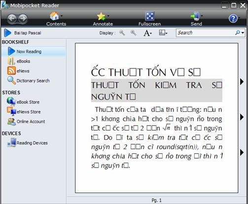 + Khả năng khắc phục lỗi hiển thị font chữ tiếng Việt khi xem PRC, một vấn đề đôi khi gặp phải với MobilePocket Reader.