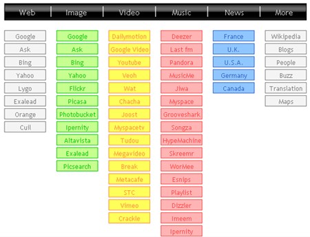 Trong mục Web, bạn sẽ dễ dàng nhận thấy sự góp mặt của những “gã khổng lồ” như Google, Ask, Bing, Yahoo và Orange… cùng nhiều trang web khác.