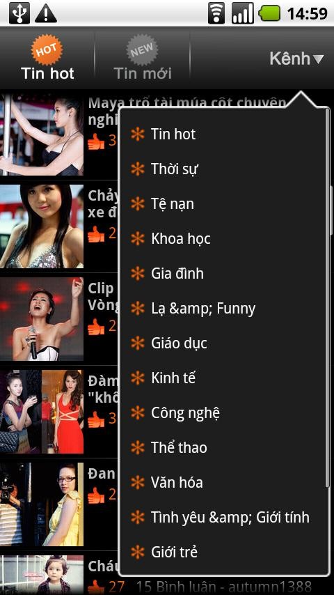 Cho phép xem tin tức theo các danh mục khác nhau một cách thuận tiện.