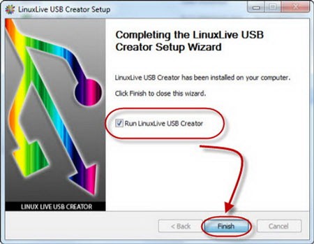 Phần mềm này hoàn toàn miễn phí và được thiết kế với giao diện trực quan, giúp người dùng thực hiện quá trình tạo USB boot chỉ với 5 bước đơn giản. Sau khi cài đặt, hãy đảm bảo tùy chọn Run LinuxLive USB Creator được chọn để khởi động chương trình ngay lập tức.