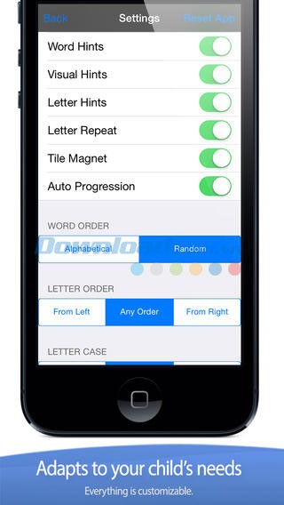 Toàn bộ trò chơi và phần phát âm có thể được tùy biến để đảm bảo trẻ hiểu rõ tất cả các chữ cái và từ vựng.