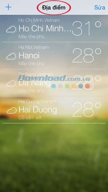 Dễ dàng chuyển đổi giữa các thành phố bằng cách vuốt sang trái hoặc phải trên các địa điểm đã lưu.