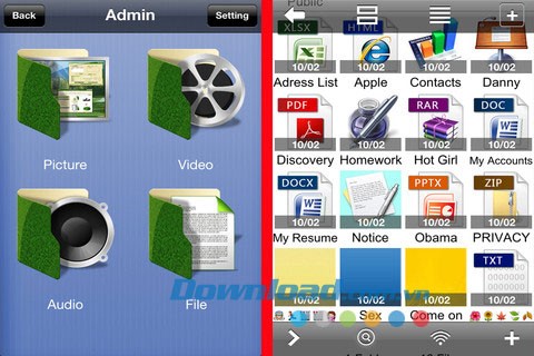 - Tự động lưu trữ các tệp tin nhập vào các thư mục tương ứng: ảnh, video, audio và tệp tin.