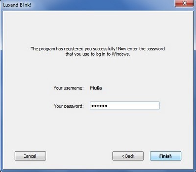 Khi phần mềm đã hoàn tất việc nhận diện khuôn mặt, bạn sẽ được yêu cầu nhập mật khẩu đăng nhập tài khoản Windows hiện tại. Nhấn Finish để hoàn tất quá trình thiết lập.