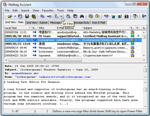 Mailbag Assistant hoạt động như một phần bổ sung cho ứng dụng email hiện tại của bạn, không thay đổi giao diện hay chỉnh sửa các file tin nhắn gốc. Ứng dụng này dễ dàng đọc và xử lý cả email hiện tại lẫn email đã lưu trữ, bất kể chúng được lưu trữ trên máy tính, mạng nội bộ hoặc các thiết bị di động như USB.