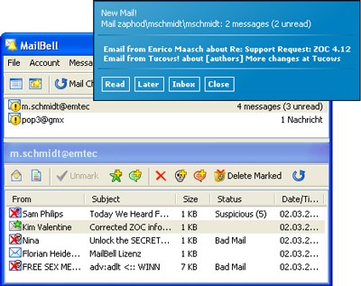 Mailbell thông báo về các thư mới đến thông qua một cửa sổ pop-up đi kèm với âm thanh báo hiệu dễ chịu.