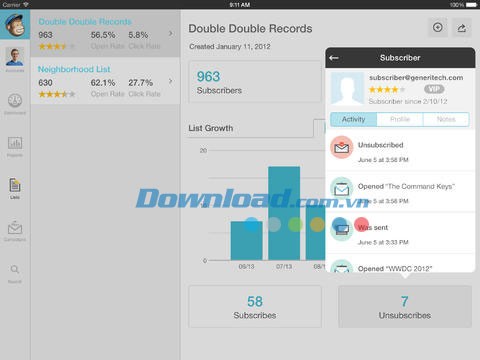 Với chỉ vài thao tác chạm trên màn hình cảm ứng, người dùng có thể quản lý danh sách, thêm người đăng ký mới, gửi chiến dịch và xem báo cáo liên quan một cách dễ dàng. Bạn có thể tạo chiến dịch trên máy tính rồi gửi chúng từ iPhone khi nội dung đã hoàn thiện.