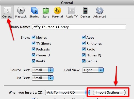 Tiếp theo, mở tab General và nhấn vào nút Import Settings.