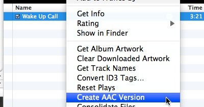 Tìm đến những bài hát bạn muốn sử dụng làm nhạc chuông, nhấp chuột phải và chọn Create AAC Version từ menu hiện ra.