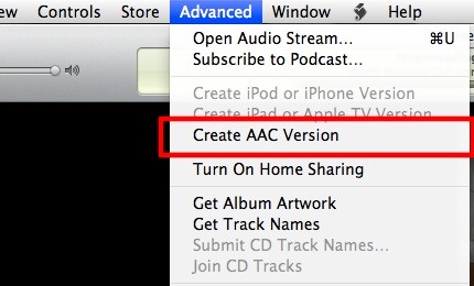 Bạn cũng có thể truy cập lựa chọn này thông qua menu Advanced – Create AAC Version.