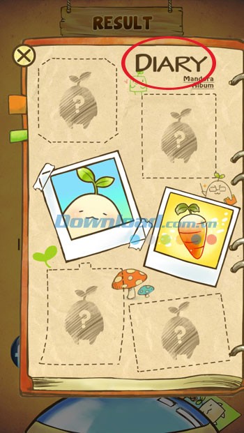 Những loại rau củ Mandora bạn thu thập được qua mỗi màn chơi sẽ được lưu lại trong nhật ký, một album ảnh được vẽ tay tỉ mỉ với hiệu ứng âm thanh thư giãn. Bạn vẫn còn thiếu một vài loại trong bộ sưu tập? Đừng lo lắng, nhật ký sẽ gợi ý những loại hạt Mandora còn thiếu trong tổng số 60 loại độc đáo.