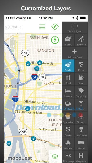 MapQuest for iOS là một ứng dụng tích hợp hoàn chỉnh các tính năng điều hướng, hệ thống định vị GPS, bản đồ chi tiết và thông tin giao thông miễn phí, được thiết kế dành riêng cho các thiết bị iPhone, iPad và iPod Touch.