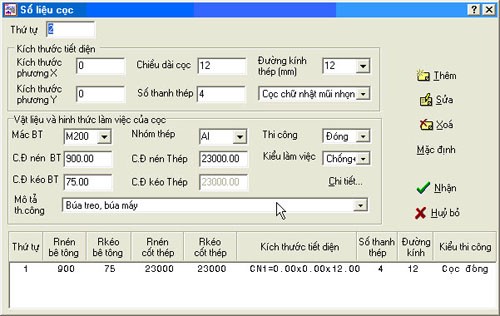 Đầy đủ các chỉ tiêu cơ lý đặc trưng của nền đất, được nhập từ số liệu các mũi khoan khảo sát.