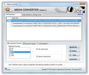Phần mềm hỗ trợ chuyển đổi giữa nhiều định dạng video phổ biến như AVI, FLV, MPEG, MOV, MP4. Bên cạnh đó, người dùng có thể tùy chọn giữ lại hoặc loại bỏ hoàn toàn âm thanh trong quá trình xử lý video.