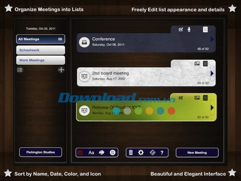 Meeting Box for iPad 2.0 mang đến tính năng mới là khả năng phân loại các ghi chú đã tạo thành các danh sách được tùy chỉnh theo ý muốn. Thay vì lưu trữ tất cả cuộc họp ở một nơi duy nhất, bạn có thể sắp xếp chúng theo bất kỳ cách nào bạn muốn.
