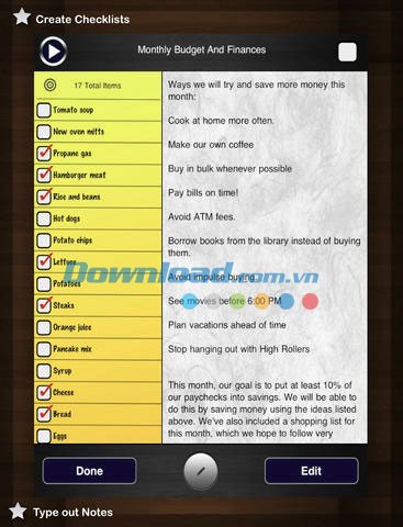 Mỗi nội dung ghi chép đều có thể được bổ sung thêm danh sách đánh dấu. Chuyển đổi những ghi chú đơn giản thành các danh mục hữu ích như danh sách việc cần hoàn thành, quản lý kho hàng, liệt kê đối tượng, hoặc danh sách mua sắm.