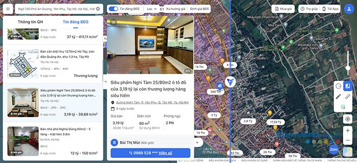 Bên cạnh việc cung cấp thông tin quy hoạch, Meey Map còn tổng hợp thông tin về các bất động sản đang được rao bán trong khu vực, hỗ trợ định giá bất động sản với các bộ lọc và công cụ tìm kiếm đa dạng.