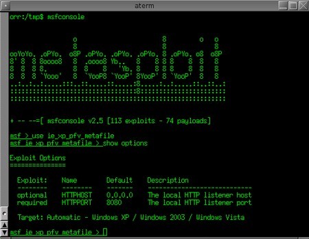 Module sẽ liệt kê các target như: winxp, winxp SP1, win2000, win2000 SP1.