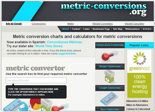 Để sử dụng dịch vụ này, bạn hãy truy cập vào địa chỉ website được cung cấp. Thay vì nhập trực tiếp giá trị vào ô Metric Converter, hãy lựa chọn một trong năm nhóm hệ thống đo lường được hiển thị ở khung bên phải màn hình, hoặc nhấp vào biểu tượng tương ứng.