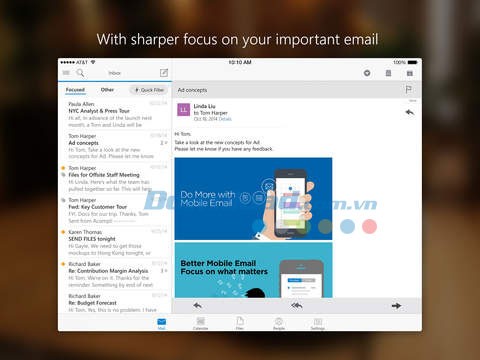 Ứng dụng di động này – một giải pháp Email miễn phí – giúp bạn hoàn thành công việc một cách hiệu quả ở mọi thời điểm, mọi địa điểm, nhờ giao diện thống nhất cho email, lịch, danh bạ và các tệp đính kèm.