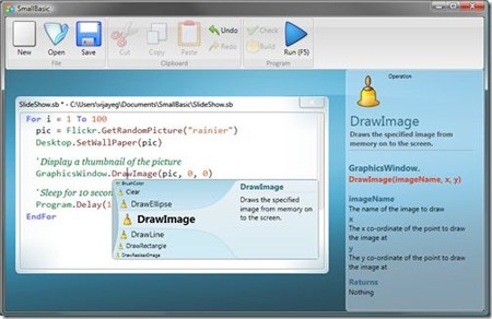 Microsoft Small Basic 1.2 tích hợp Kinect cho Small Basic, giới thiệu 3 đối tượng Kinect mới. Bản cập nhật này còn mở rộng đối tượng Dictionary để hỗ trợ biên dịch sang 7 ngôn ngữ khác, đồng thời sửa các lỗi liên quan đến Dictionary và khắc phục một số lỗi gây ra sự cố. Giao diện người dùng (UI) cũng được cải tiến cho 15 ngôn ngữ khác nhau. Lưu ý, nếu bạn đang sử dụng Windows XP hoặc phiên bản cũ hơn, hãy tải Small Basic 1.0 thay thế.