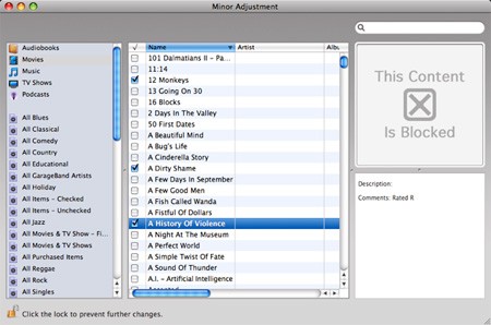 Đây là một tiện ích đơn giản, sở hữu giao diện thân thiện, trực quan và dễ dàng thao tác. Chương trình có khả năng chặn các ứng dụng như Audiobooks, Music, Movies, TV Shows và Podcasts, ngăn chặn việc mở trực tiếp hoặc xem trước thông qua iTunes, iPod, iPhone và Apple TV.