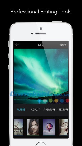 MIX by Camera360 for iOS mang đến cho bạn khả năng tự thiết kế bộ lọc ảnh độc đáo với kho tàng 115 bộ lọc ảnh có sẵn, cùng hơn 40 họa tiết cơ bản và 10 công cụ sửa ảnh chuyên nghiệp.