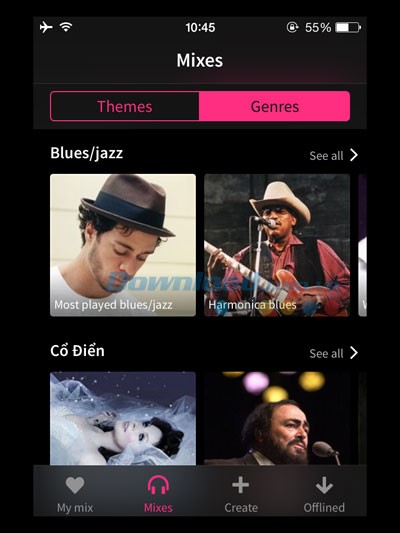 Bạn cũng có thể tải các bộ mix yêu thích về máy để nghe offline, giúp tiết kiệm chi phí dữ liệu và kết nối mạng.