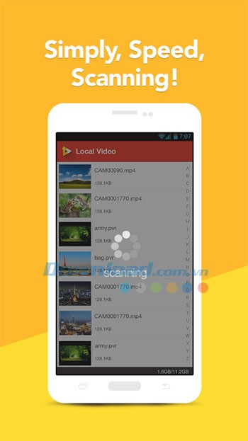 Ứng dụng tự động tìm kiếm và quét toàn bộ các tập tin video hoặc phim đã được lưu trữ trên thiết bị của bạn.