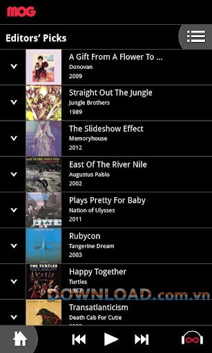 MOG sở hữu trọn bộ những album nhạc mà bạn yêu thích. Bên cạnh đó, ứng dụng còn gợi ý những bài hát mới phù hợp với sở thích âm nhạc đa dạng của bạn.