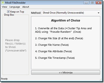 Moo0 FileShredder 1.17 là công cụ hữu ích giúp bạn loại bỏ vĩnh viễn những tập tin chứa thông tin cá nhân hoặc bí mật khỏi ổ cứng. Việc sở hữu phần mềm này là cần thiết, bởi lẽ dữ liệu cá nhân thường có thể được phục hồi bởi người khác ngay cả khi bạn đã xóa chúng theo cách thông thường.