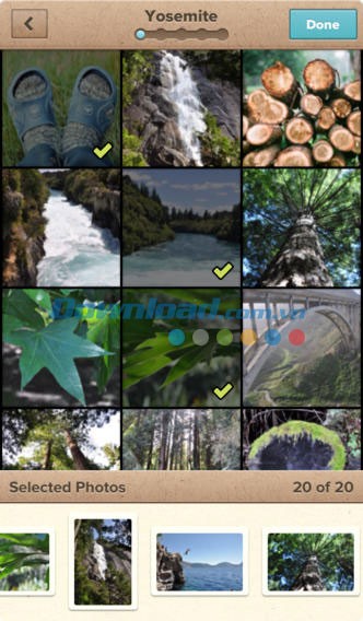 Mosaic Photo Books for iOS nổi bật với thiết kế bìa album đẹp mắt và độc đáo. Bạn có thể thỏa sức lựa chọn và xem trước bố cục đã tạo. 20 bức ảnh của bạn sẽ góp phần tạo nên một album mosaic mang đậm cá tính. Kích thước album chuẩn là hình vuông 7 inch, phù hợp để cả gia đình cùng thưởng thức.