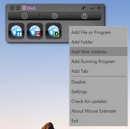 MouseExtender mang lại hiệu quả cao trong việc quản lý và khởi động các ứng dụng, thư mục và cả địa chỉ website yêu thích. Bạn có thể gom chúng vào các nhóm riêng biệt, sau đó mở chúng chỉ bằng một cú nhấp chuột duy nhất.