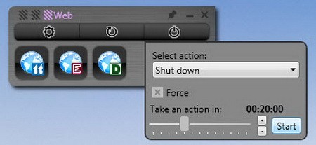 MouseExtender còn cung cấp tính năng tắt máy, khởi động lại hoặc đưa máy tính vào chế độ ngủ theo lịch trình. Bạn chỉ cần rê chuột vào biểu tượng Shutdown trên giao diện chính, nhấp vào mũi tên sổ xuống và chọn thao tác mong muốn (Shutdown, Sleep hoặc Hibernate).