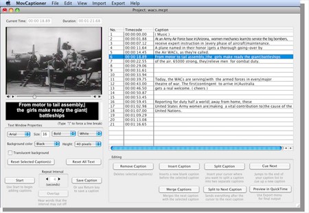 MovCaptioner là một tiện ích nhỏ gọn dành cho Mac, hỗ trợ ghi lại và lồng ghép các đoạn lời dịch, thuyết minh vào file movie hoặc video.