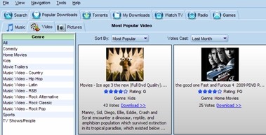 Tab "Popular Downloads" cung cấp ba thẻ phụ: Music (âm nhạc), Video (video clip) và Picture (hình ảnh). Bạn có thể tùy chọn cách hiển thị kết quả bằng cách sử dụng Sort by, với các tùy chọn như Most Popular (nhiều người tải về), Vote (được đánh giá cao) hoặc Quality (chất lượng cao). Để tải về những nội dung ưng ý, chỉ cần nhấp chuột phải vào file và chọn Download.