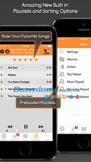 Các tính năng nổi bật của ứng dụng MP3 Songs Downloader Free dành cho iOS: