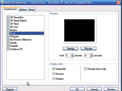 Khung "Order" cung cấp các tùy chọn về kiểu trình chiếu Screensaver, bao gồm: