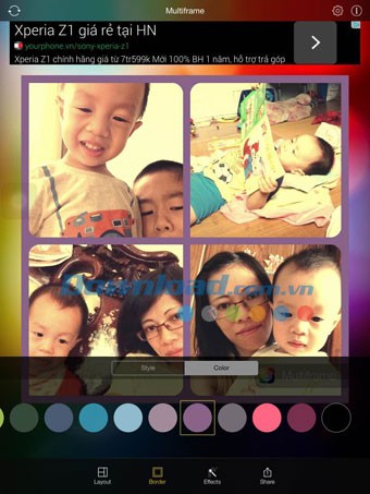 Thay đổi kiểu dáng và màu sắc của đường viền chỉ với một chạm. Thao tác đơn giản này giúp bạn cá nhân hóa ảnh ghép theo phong cách riêng.