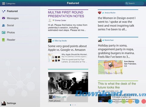 Ứng dụng này giúp bạn dễ dàng kết nối với bạn bè thông qua các tài khoản hiện có. MultiMi tương thích với nhiều nền tảng phổ biến, bao gồm Facebook, Twitter, Gmail, LinkedIn, Yahoo Mail, Hotmail, Google Reader, Read it later, và Google Plus, Picasa…