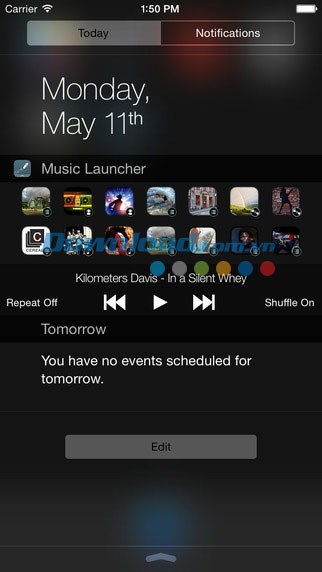 Sau khi cài đặt Music Launcher miễn phí, bạn sẽ có ngay một Today Widget tiện lợi trong trung tâm thông báo của iOS 8.