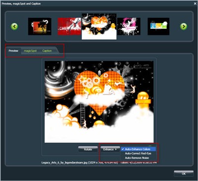 Chỉ cần bấm đúp chuột vào ảnh để mở cửa sổ chỉnh sửa. Tại đây, bạn có thể sử dụng các công cụ như Auto-Enhance Colors để cải thiện màu sắc, Auto-Correct Red-Eye để khử mắt đỏ, Auto-Remove Noise để giảm nhiễu.