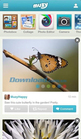 Muzy for iOS tích hợp nhiều công cụ sáng tạo được yêu thích, bao gồm nâng cao chất lượng hình ảnh, tạo ảnh ghép, viết trạng thái và nhiều tính năng khác: