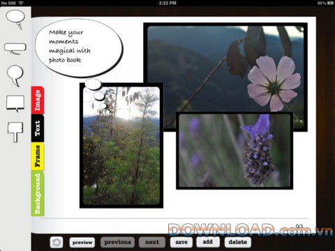 Ứng dụng hỗ trợ thêm các khung ảnh đa dạng và hình nền bắt mắt, giúp tăng thêm sự hấp dẫn cho cuốn sách ảnh của bạn.