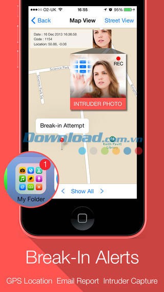 Thư mục bảo mật sẽ gửi thông báo đến người dùng về vị trí và thời điểm ứng dụng bị xâm phạm, kèm theo mã truy cập đã được sử dụng. Đây là một tính năng lý tưởng trong trường hợp có người thân hoặc bạn bè tò mò về thông tin cá nhân, hoặc khi thiết bị di động không may bị thất lạc.